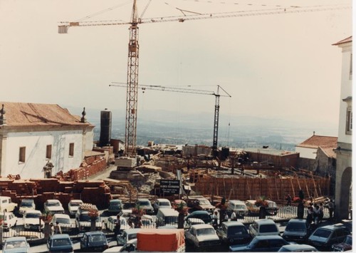 A capela-mor foi executada pelo licenciado Mendo Cão, que ali teve s sua sepultura. Durante a construção do convento deram-se vários casos miraculosos. Certo dia, passou um carro de bois carregado de pedra sobre o homem que o guiava, chamado Francisco Giraldes, do que resultou ileso. Outro operário, de seu nome Pêro Fernandes, caindo-lhe um penedo em cima, nada sofreu. E enfim outro caso, e esse o mais conhecido e admirável, foi que, quando duas juntas de bois carregavam uma grande trave para sustentar o coro da igreja, ao começarem a subir a íngreme ladeira, lhes minguaram as forças, e dali não arrancaram por mais diligências que fizessem os boieiros. Calhou então passarem por ali uns garotos, que ao verem tal, disseram: